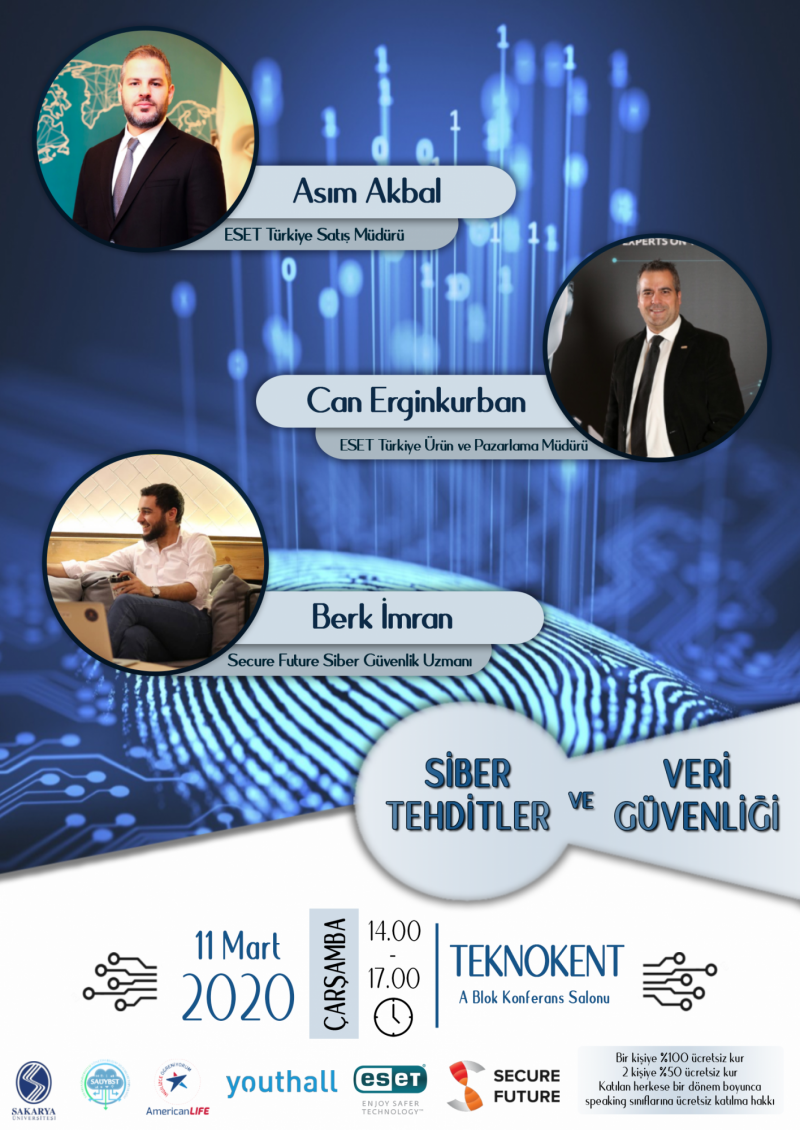 Etkinliğe ESET Türkiye Satış Müdürü, ESET Türkiye Ürün ve Pazarlama Müdürü ve Secure Future Siber Güvenlik Uzmanı katılacaktır. Ayrıntılı bilgi için SAUYBST ile iletişime geçebilirsiniz.